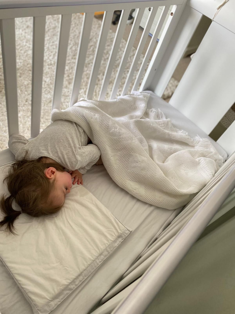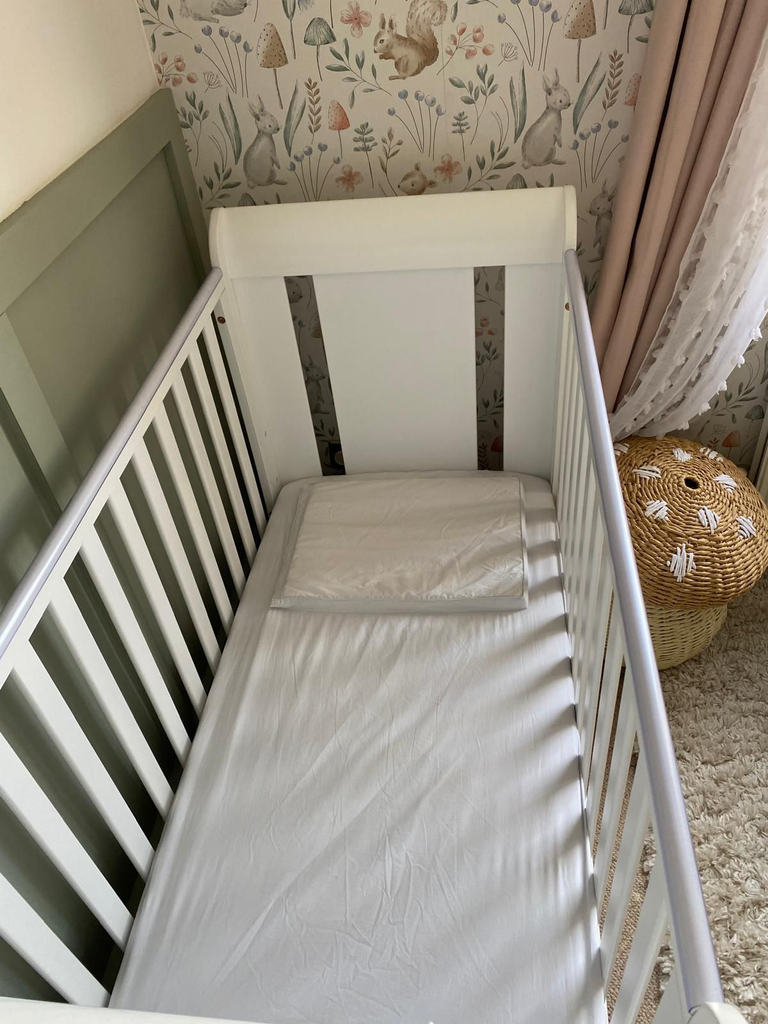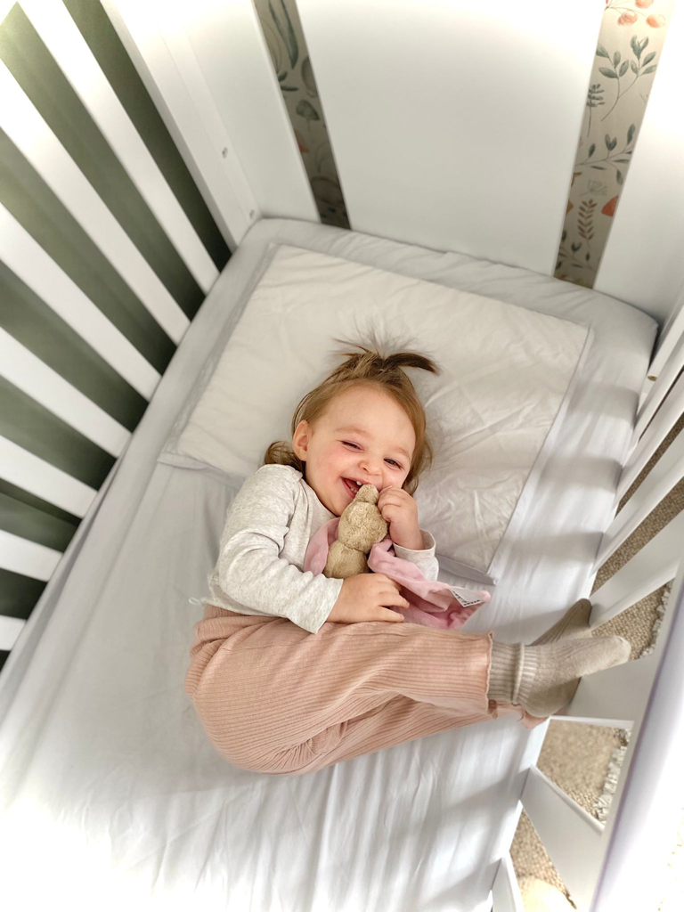 We love our sheet, makes me feel at ease introducing a pillow and helps our baby sleep so well and he also can’t throw his pillow out the cot